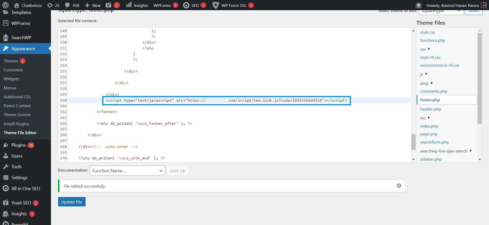 - Paste it into the header or footer section of your `index.php` or `index.html` file.
