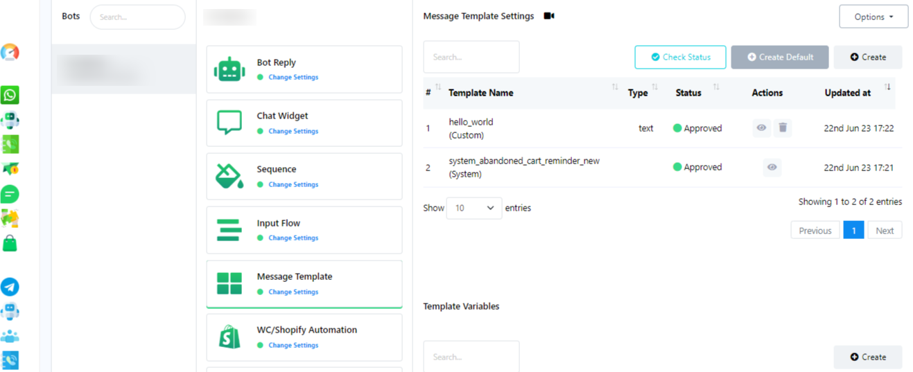 - Go to Wappybot Dashboard and navigate to the Bot manager section.